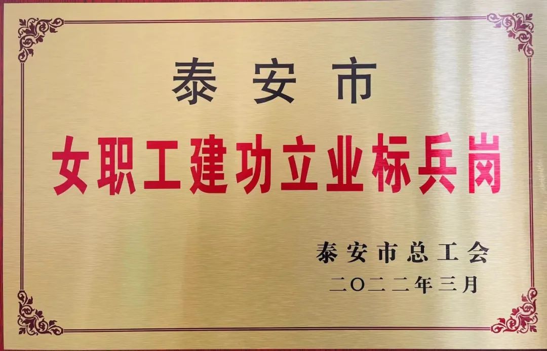 “泰安市女職工建功立業(yè)標(biāo)兵崗”