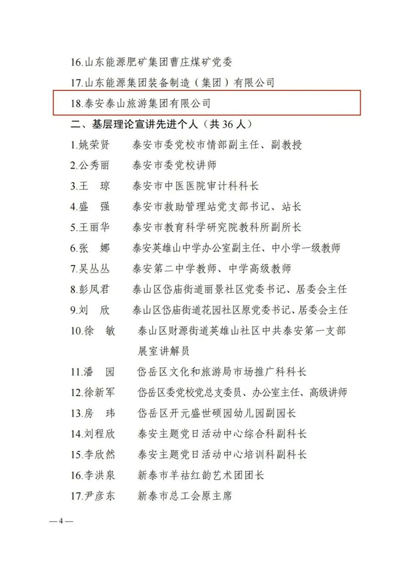 2023年以來泰安泰山旅游集團(tuán)組織開展了一系列形式多樣、富有特色、影響廣泛的宣講活動(dòng),經(jīng)申報(bào)推薦,泰安泰山旅游集團(tuán)榮獲中共泰安市委宣傳部2023年基層理論宣講先進(jìn)集體稱號(hào)!